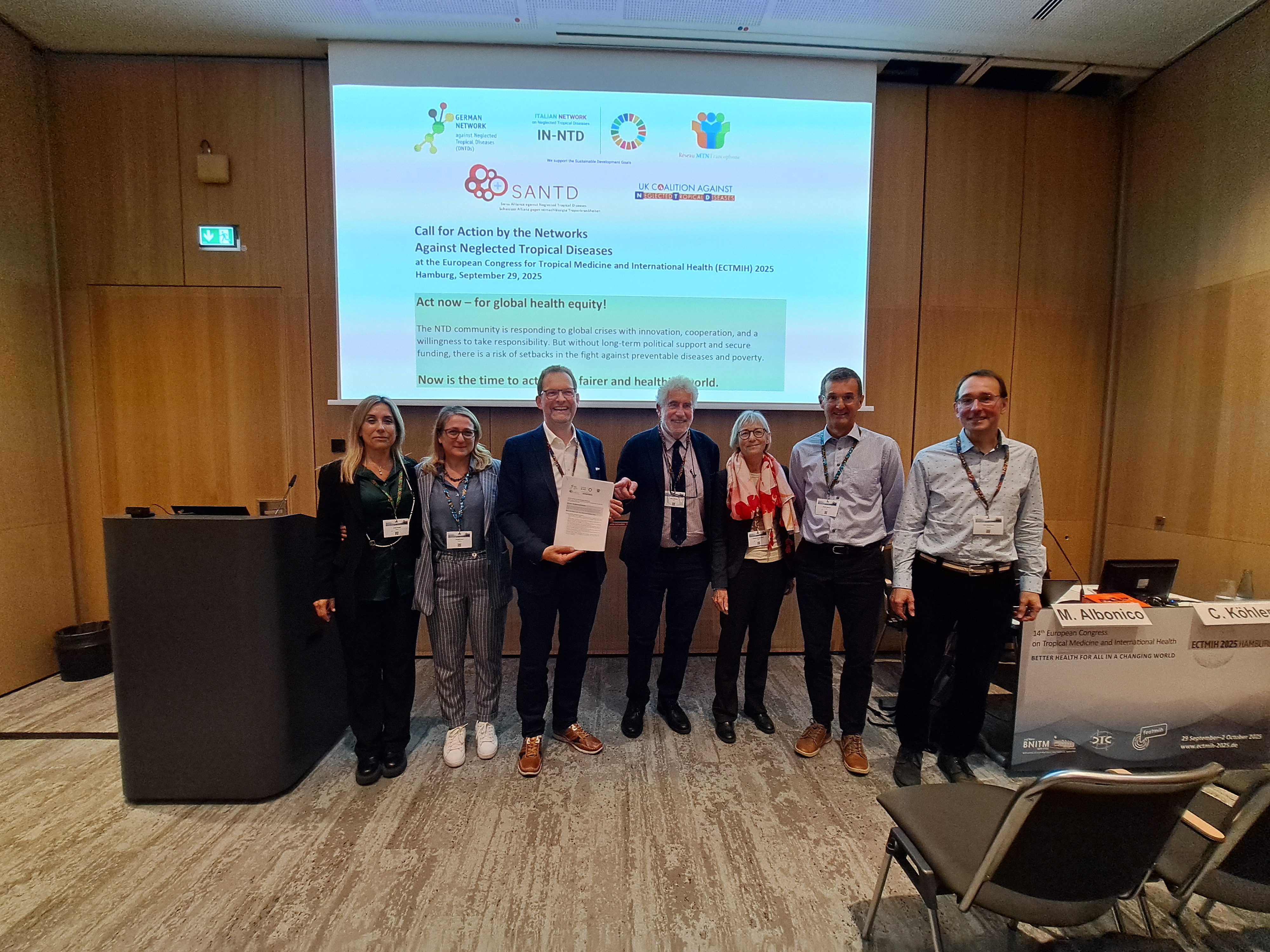 Hamburg, 29. September 2025 -Auf der ECTMIH, dem Europäischen Kongresses für Tropenmedizin und Internationale Gesundheit (ECTMIH) 2025 zu dem mehr als 1000 Expert:innen aus aller Welt nach Hamburg kamen, richteten die europäischen Netzwerke gegen vernachlässigte Tropenkrankheiten (aus Deutschland, Italien, Frankreich, Schweiz und UK), einen eindringlichen Call for Action an ihre jeweiligen Regierungen.